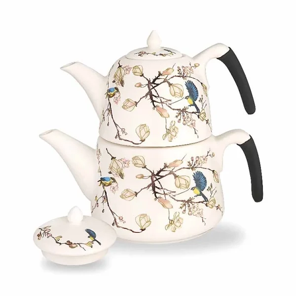 کتری و قوری چینی طرح دریا ترکیبی بینظیر از هنر و اصالت است. تصویر ظریف گنجشکها که روی شاخهها و میان شکوفه ها نشستهاند، نمادی از زندگی، نشاط و طبیعت است. این طرح دلنشین، وقتی روی بدنهی سفید و براق چینی نقش میبندد، جلوهای منحصربهفرد ایجاد میکند که هم مدرن است و هم رگههایی از اصالت شرقی دارد.